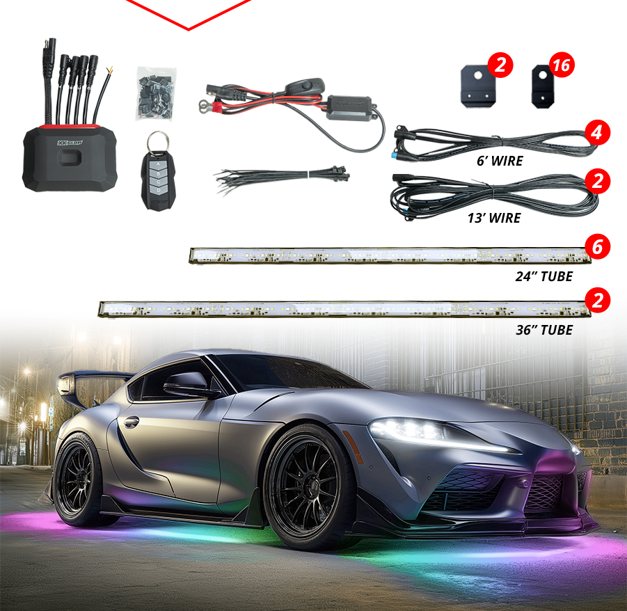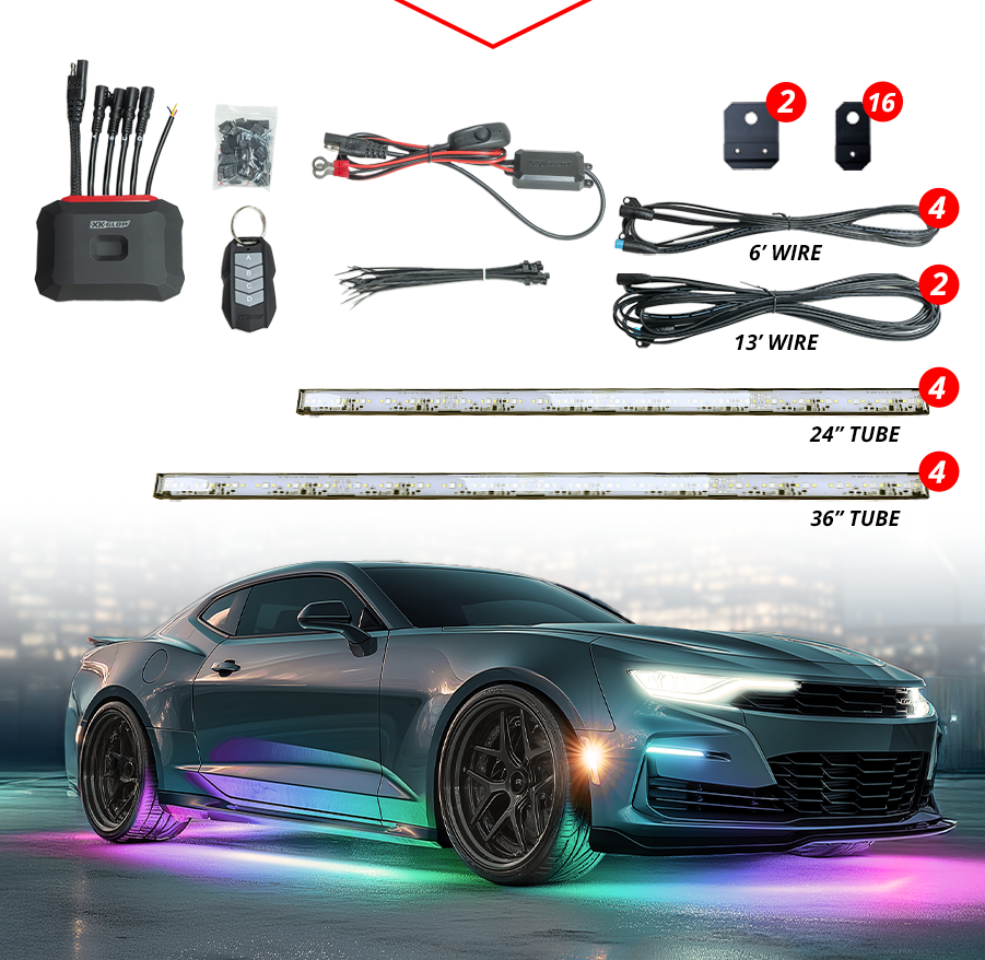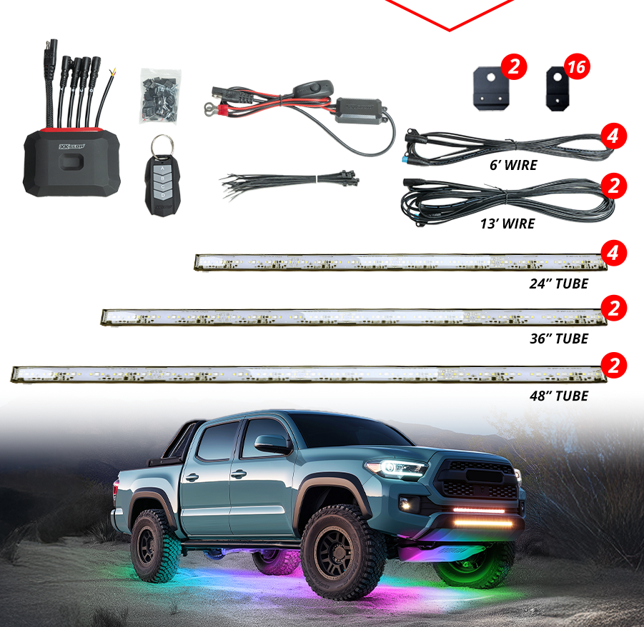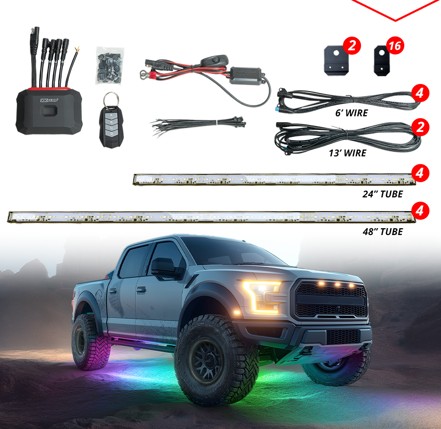 - Enhanced LED Light Tubes: Impact-resistant, IP67 waterproof, rugged aluminum tubes designed for premier underglow lighting use.
