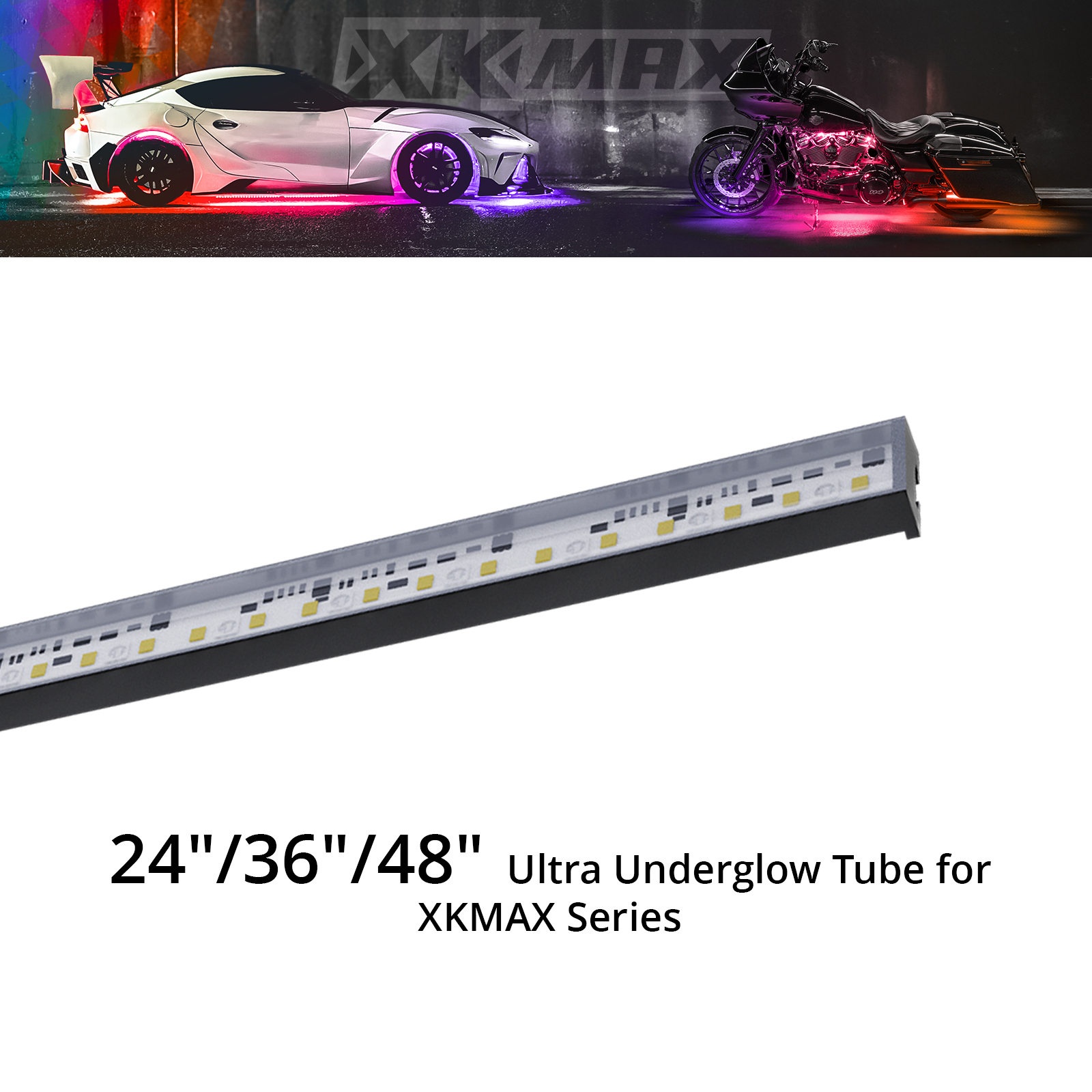 The XKmax Ultra Kit packs nearly three times the brightness of our standard XKmax tubes, delivering unmatched glow and intensity. Thanks to its ultra-thin end cap design, you can mount two tubes end-to-end for a flawless, continuous beam of light. With 2ft, 3ft, and 4ft tube options available, you’ll always have the flexibility to combine lengths and achieve the perfect fit for your ride’s sides.